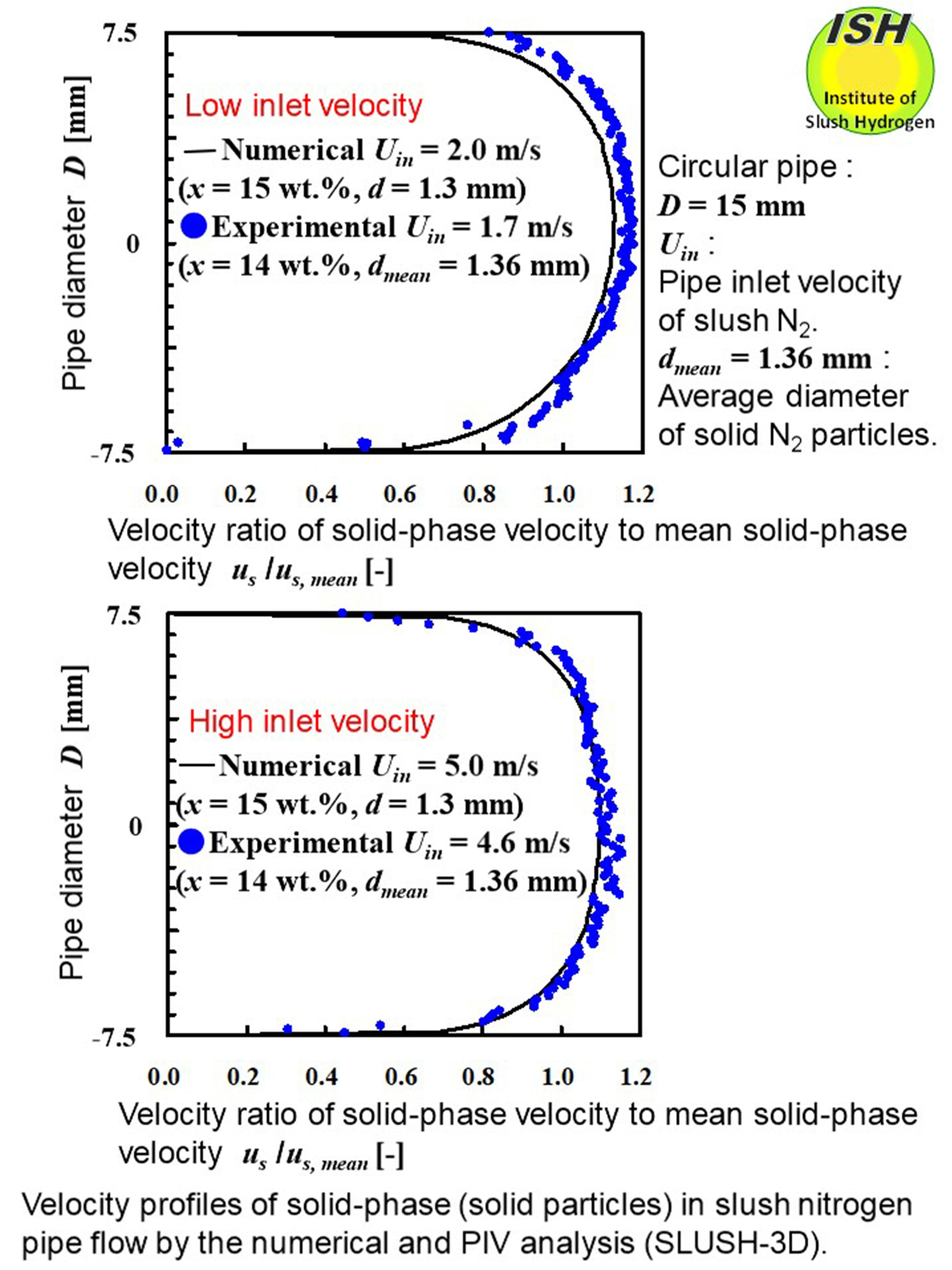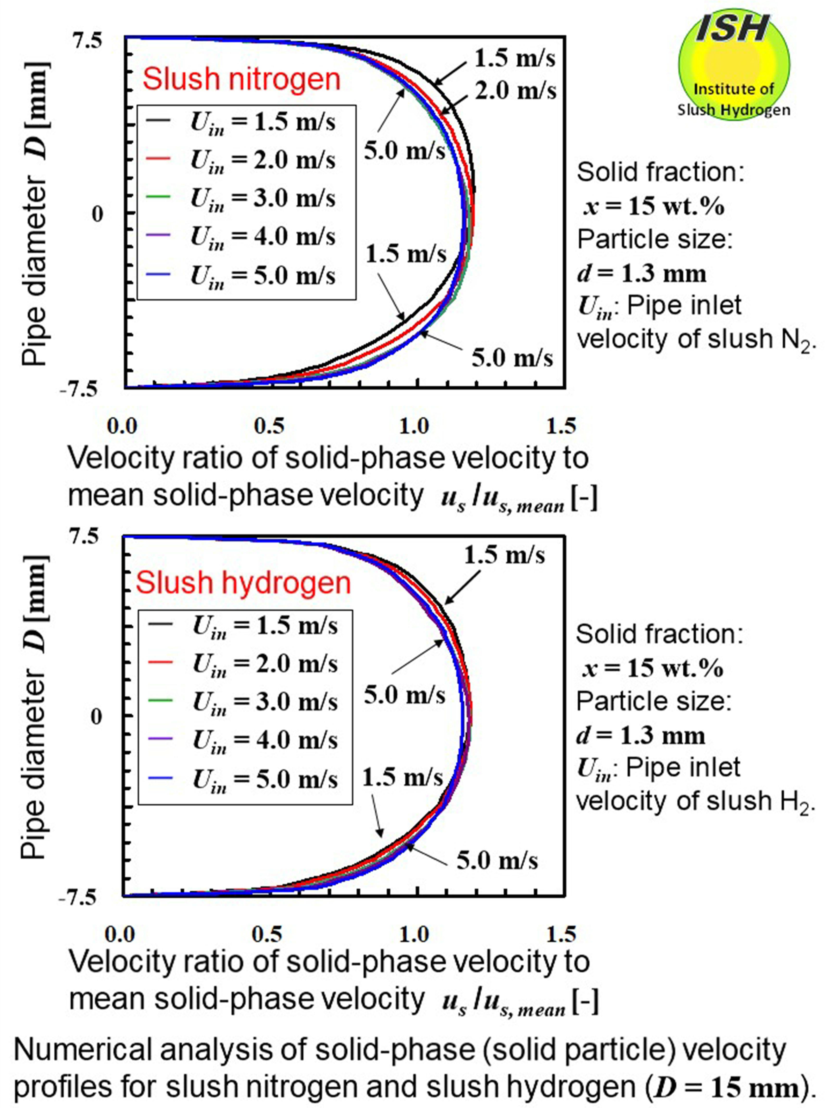 a lower flow velocity in slush hydrogen than in slush nitrogen [20, 26].